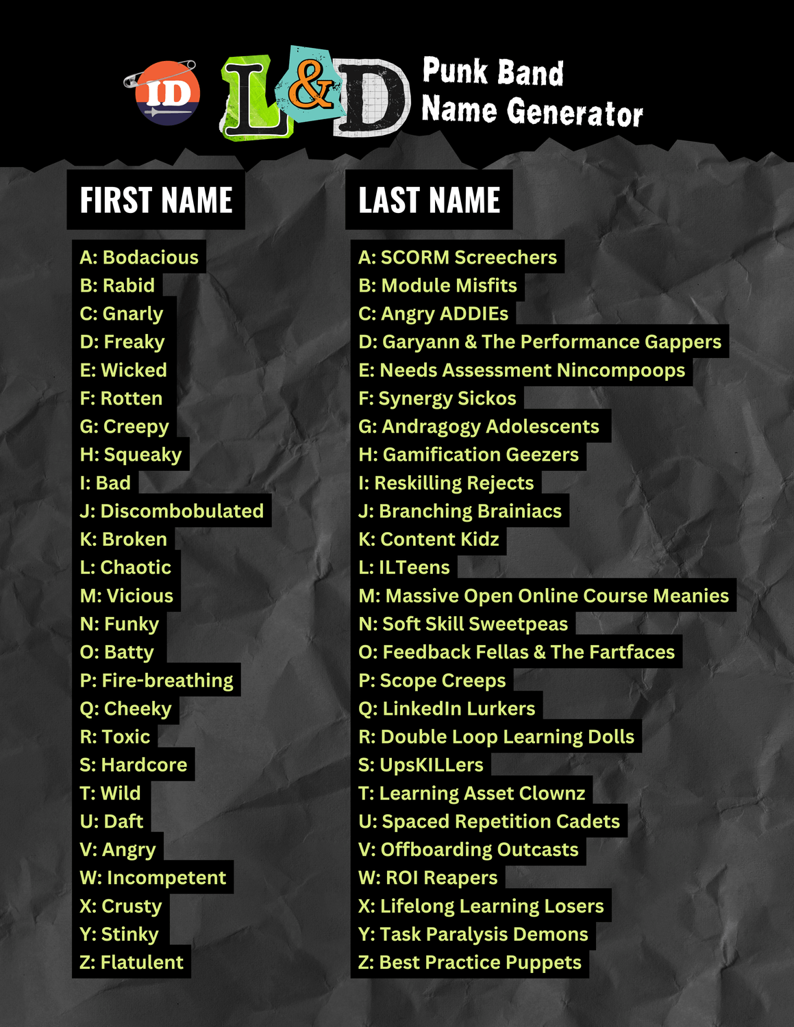Share your band name here if you get a really funny one. We mean...cool...one.